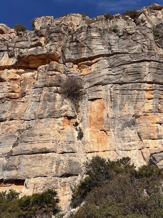 A beautiful, underrated line that combines fun steep tufa climbing low down with delicate slab moves above. Varied, flowing, and long, with a memorable finale. Might have spaced bolting.