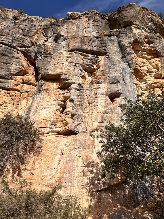 Hard climbing for the grade on drilled holds. Rebolted in Feb 2022.