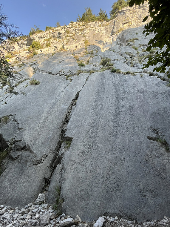 This is not 5+ if you are too short to reach the crux move. Requires at least 160cm arm length to reach it statically, otherwise that single move is at least 6a+. We had to switch leads with my partner to get past this move.