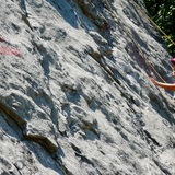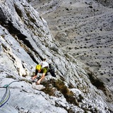 Monte Brento is the huge mount over the slabs of Placche zebrate. Its east face is stunning, featuring huge yellow overhangs and slabs of over one km of length. Brento is a famous destination for the base jump, so it is quite common to climb with parachutists on your back.