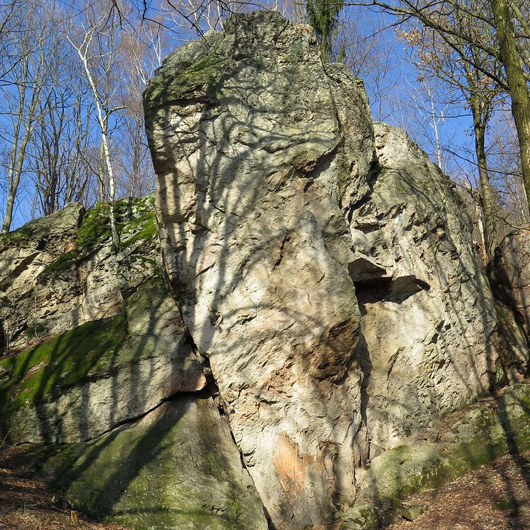 Up the face to a bolt, then from the RIGHT via crimps to the 2nd bolt of “Hornopasecká Promenáda” and finish up it to the top