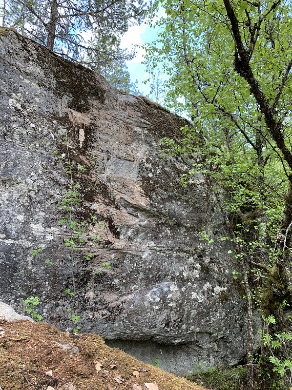 (Flaket er nå knekt av noe som gjør bulderet vesentlig hardere).