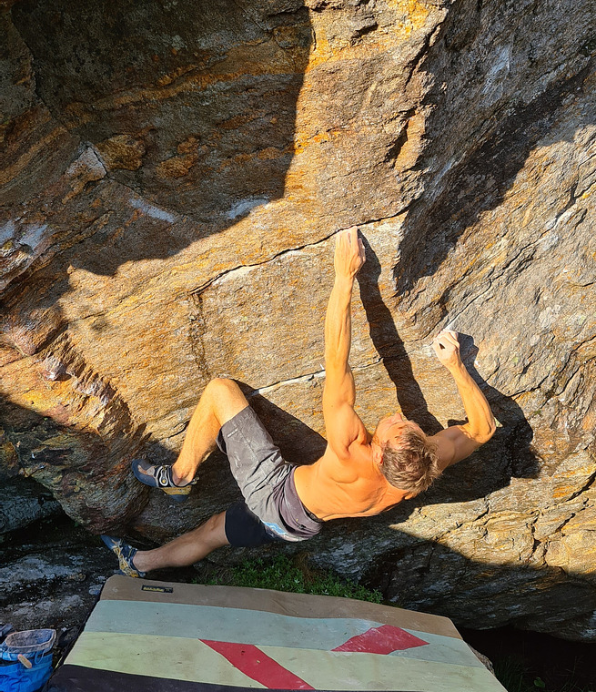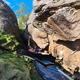A few freestanding boulders on both side of the road by Futskaret. The rock quality is mediocre, a bit sharp on Gammelsteinen but more chossy on Huecotaket. A minimum of 2 crashpads is required.
