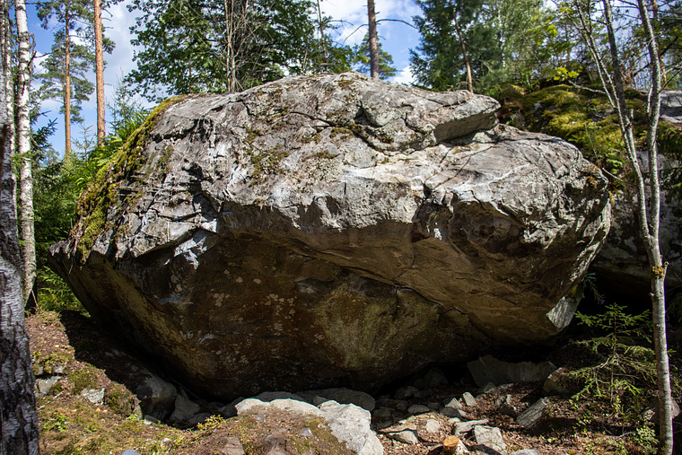 SS same as Silkki and traverse to the other side of the boulder. Top-out from the right arete.