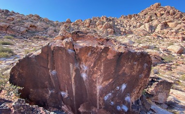 Hike from the Red Springs Picnic Area parking lot up the steep hill directly south. Once over the hill the trail splits, stay to the right, hiking down to where the trail divides again. Head down hill this time vearing right until you reach this striking feature of rock known as "Side Effects"(5.10b) Classic 4 star route
