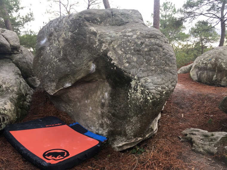 Stand up into the underclings and move to the slopy crimp/sloper right hand. Then place your left foot above your left hand and rock over the good left foot and stand up and reach for the top. Now mantle