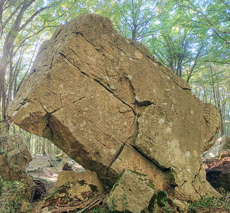 sit start dal centro del masso, sale dritta su placca appoggiata con buone prese, uscita alta ma facile