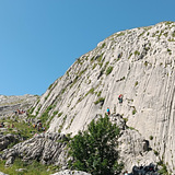 Facing east/southeast, the wall gets sun until around 2:30 PM, making it a great destination in late spring, summer, and autumn. Despite its elevation of around 2000 meters, summer mornings can still get quite warm. The modern stainless steel bolting (10 mm fix bolts with closed-ring anchors) ensures a relaxed and safe climbing experience for all.