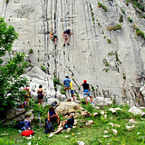 Il settore destro, leggermente più verticale, propone itinerari scolpiti e continui.