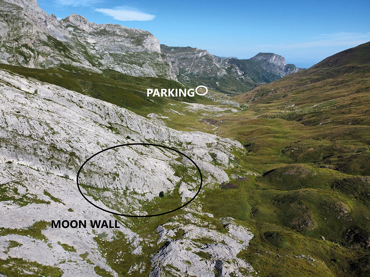 ⛰️Moon Wall si sviluppa su un eccezionale calcare giurassico bianco, abrasivo e talvolta tagliente, che offre un'aderenza eccellente e un’arrampicata prevalentemente tecnica su placche compatte. Le vie, lunghe dai 10 ai 25 metri, si snodano tra gouttes d’eau, cannelures e tacche nitide, regalando uno stile di arrampicata elegante, preciso e mai troppo fisico.