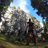 Left wall: The main attraction is the routes on the amazing big flat face. Most of these routes are renovated and the bolts are in good shape. There are also some extra anchors placed a bit above the routes (not visible/marked on the topo), usable if you want access anchors just below or close to the edge. One newly fully bolted 6a route was recently made (2022). There are also some newly (2022) renovated bolted easier routes located more to the left of the wall which is quite alright. Far to the left, there are a couple of quite fun very steep and bouldery routes.