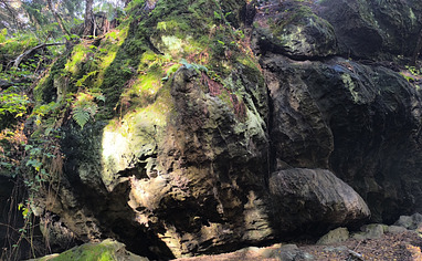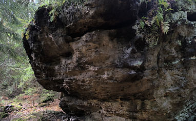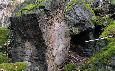 Park at the main parking lot and follow the gravel forest road. After about 800 m, turn left onto a small forest path. After another 100 m, you’ll reach the tall bloc known as the Fuck Wand.