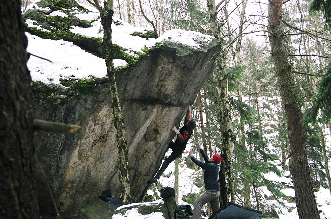 The Muerte crag is directly connected to the Fuck sector. Often overlooked, it’s a great spot for some peace and solitude during busy weekends. The boulders are scattered throughout a dense mixed forest, so some are mossy or partially hidden among the branches.