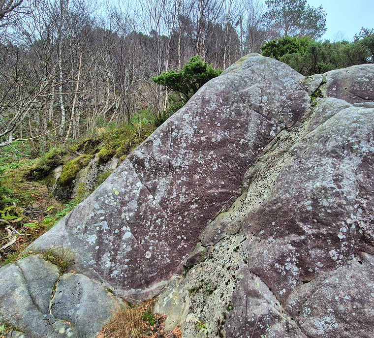 Klatre langs eggen. Utstikket som skrår oppover nede til høyre er ikke med.