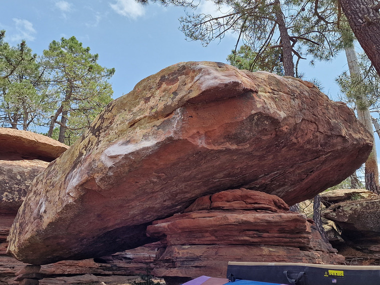 Start right hand pocket in roof, left hand sloperrail. Without base pillar. Take care: rock is moving....