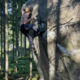 2025 - large portions of the dense forest are felled. Henric, on his way down to the fine bouldering area, Sätra Bruk, drives down the dirt road and notices a giant block at the bottom of a new clearing: "Myrhultsblocket", which is the finest in the Myrhult sector. Shortly thereafter he found Högsåsblocket. Driven by determination on a rainy summer day, he later stumbled upon so far the finest area in Velen; Gjuteriet!