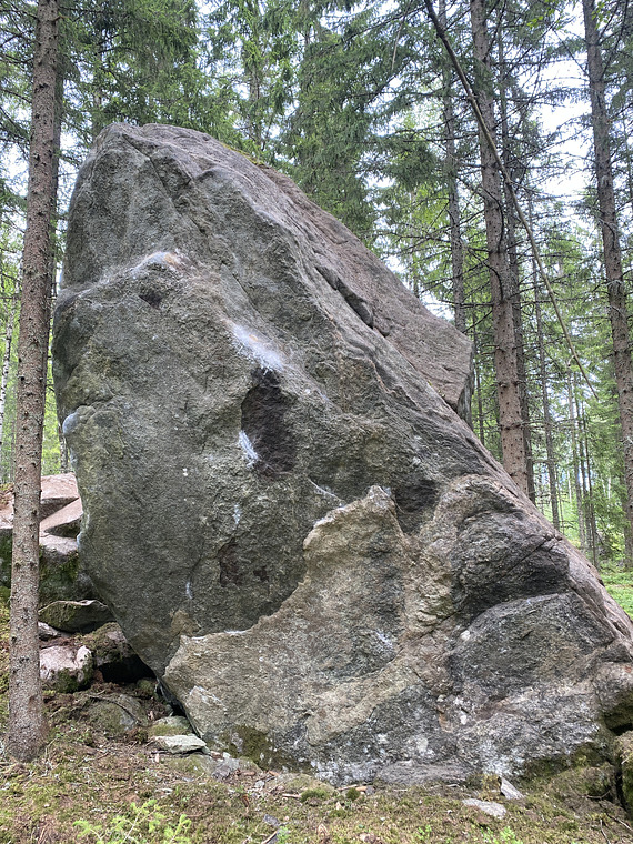 Sittstart. Följ slooper-railen, toppa vid blockets högsta punkt.