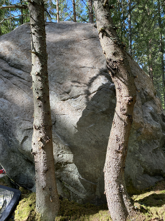 Stand start. The crux is to not touch the trees