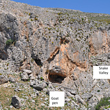 Continue along the track followinf the cairns to the yawning cave of Ourania, with more difficult technical climbing.