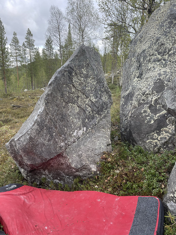 Sitstart. Right hand on a crimp kinda low, left hand on a crimp on the arete. Go up following the arete.