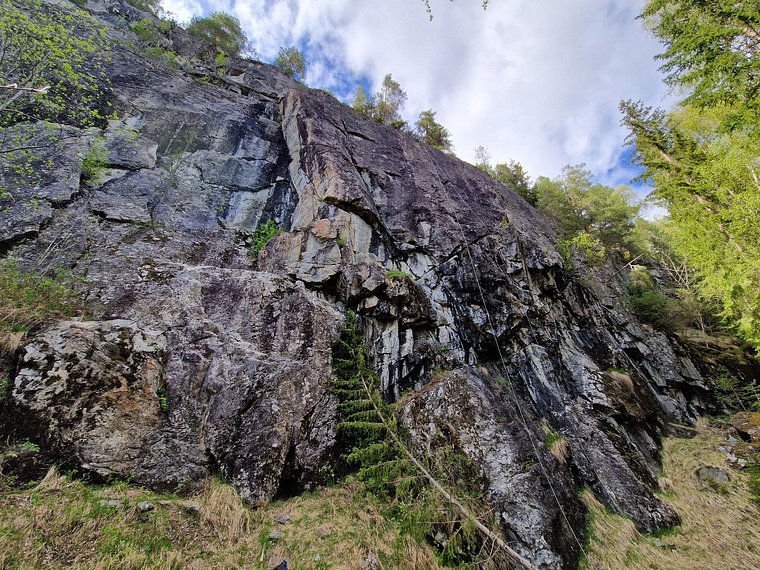 Fun dihedral, juggy all the way. Easy to protect with cams. Bit bushwacky lower down, but great fun after.