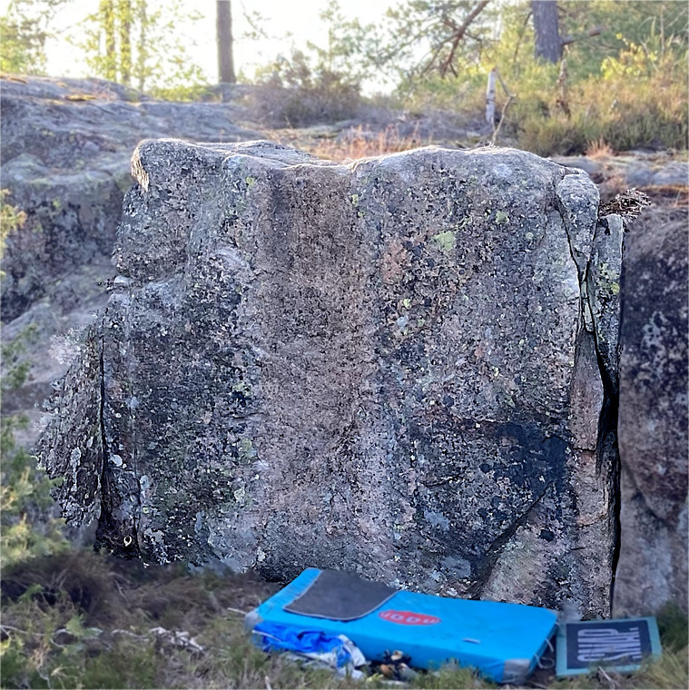 Start sat between good holds, and use the crack for start foot. Head up and left.