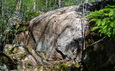Tänk på att de ibland arbetar i skogen så parkera med hänsyn till att skogsmaskiner kan behöva passera. Från parkeringen gå igenom tunneln som går under vägen och följ motionsspåret tills du ser en s... Read more