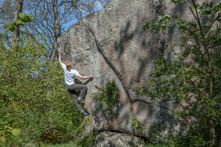 ⛰ First and foremost is Norra Strö. A large roadside bloc with mostly solid landings. A few of the seventh-grade lines here are absolute gems — technical, crimpy, and satisfying. There are some easier problems too, but the harder ones are the real draw.