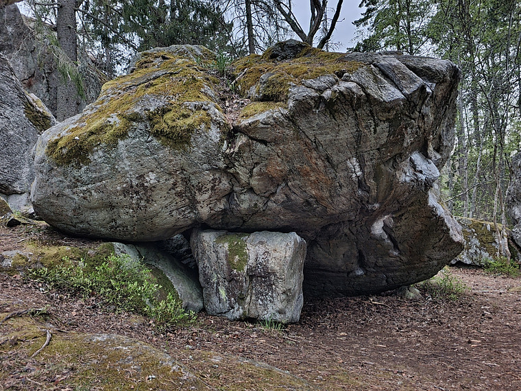 / Skicka VH lång ut till halvbra list / Tåhook till höger på Martins grepp / HH till minijug i taket / VH vidare till bättre grepp / upp till kant / toppa ur. (Tåkroka högerkanten, men håll tassarna borta. Stenen på marken till vänster ingång ej)