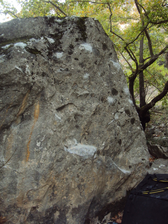 Stand start on the big sloper go straight up with right foot on the sloper.