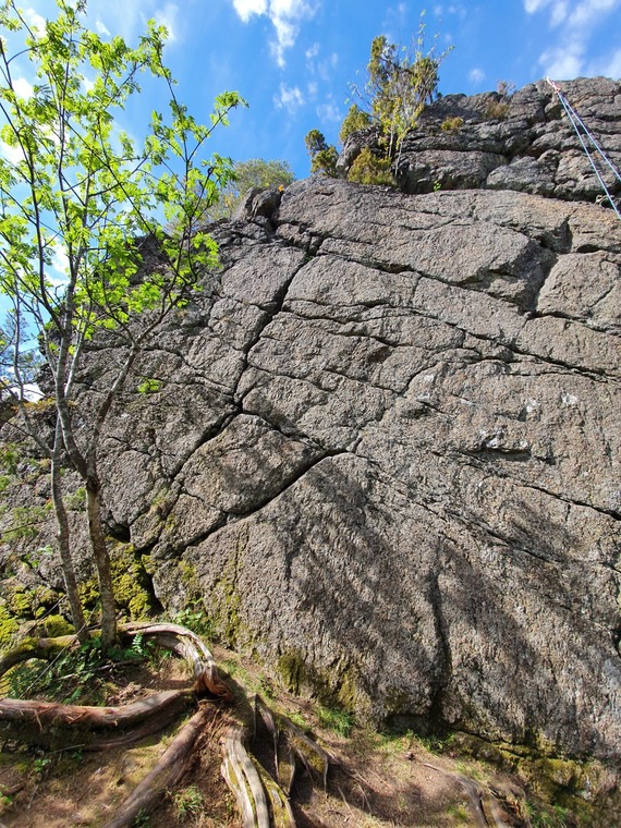 The original route following the obvious crack. Ends at the anchor with two rings. FA was made solo, without protection.
