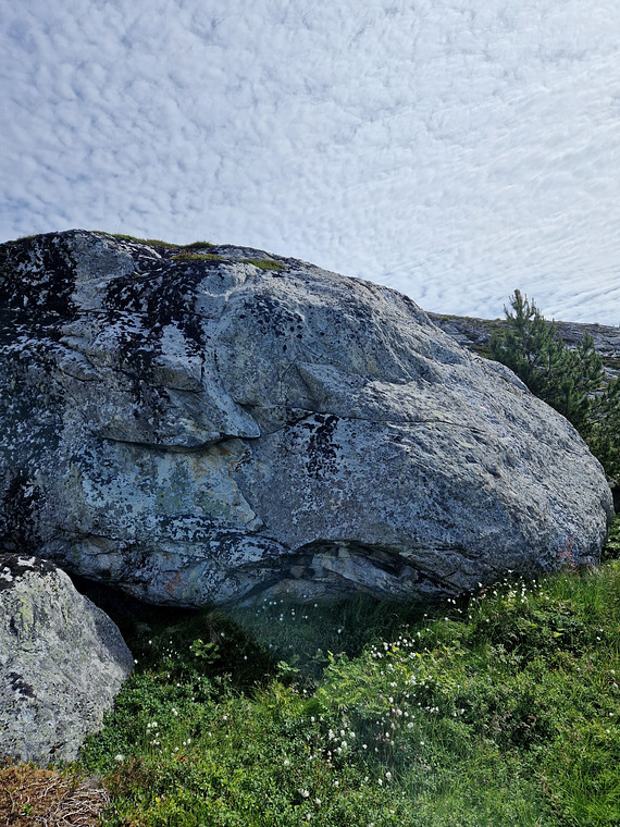 same start on the flake as "godt haill". goes up and traverses out right into the slab.