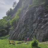 Wide wall of beautiful rock, with very little approach and a comfortable meadow at the base, perfect for families, children, and beginners. The routes are all well-protected and offer a didactic climb on a slab with good holds. The "strapiombi" sector, isolated and quiet, offers a handful of more athletic and training routes, with short sections of strenght, always with close bolts and decidedly soft grades.