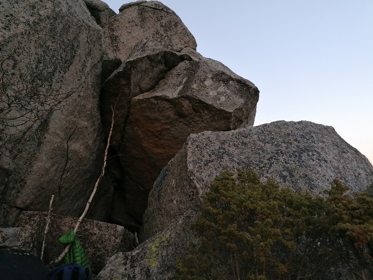 Sit start fra flat stein, topout kun ved bruk av risset. FA: Daniel Mikkelsen 2020-03-26