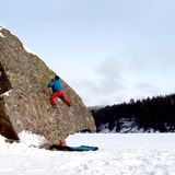 Deeper into the Østmarka woods from the Haraløkka crag, you'll find Bukkeberget. The sector mainly consists of a relatively new, high density area called Haraparken and some decently sized boulders and walls spread around the area. There are mostly easy to intermediate grades here. Wedged between Ulsrudvann and Nøklevann, it's a nice area to spend the day and have a rest at the lakeside for lunch.