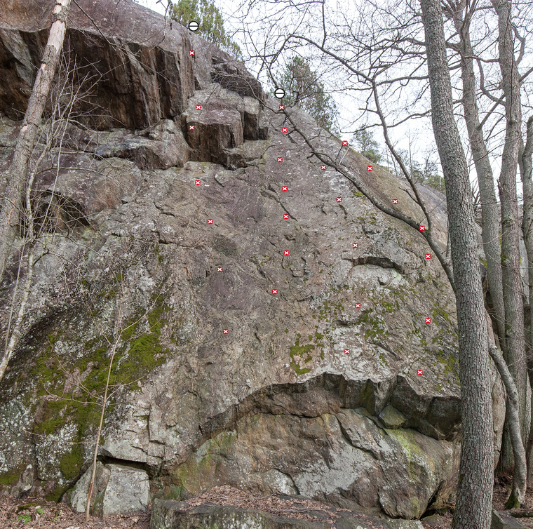 Delar insteg med "Rak linje" men efter den första bulten går man åt höger. Ombultad 2016 av Andreas och John.