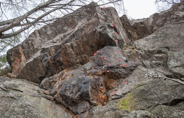 Över förväntan! Riktigt kul. Fyra fina krux på blandad stenkvallitet. Bonus att få göra en 2+ slabb för att komma till leden. Föll på slutet fyra gånger, kunde gått second go, men stretade emot. Nu dagen efter gick den direkt som uppvärmning :). "Jättekul" att rensa.
