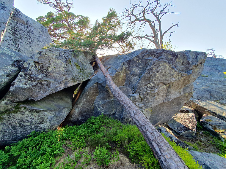 Sit start from arete, left on quite a good hold. Don't dab the tree when topping out.