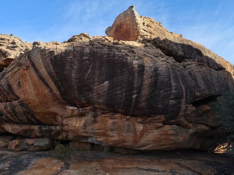 Just left of Tony's Big Swoop/The End and just right of the block under the ledge. Ledge to ledge heel dyno with a crazy double clutch and swing. Dope!