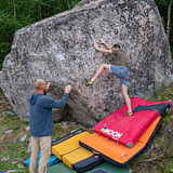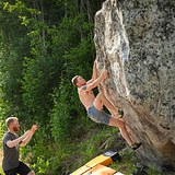 Morsom stein med flere flotte linjer, vel verdt et besøk selv om det ikke er så mange ruter. Både sva-utfordringer og fingertunge ruter med dynamiske flytt. Steinen får sol det meste av dagen, så overskyet vær er en fordel. Den tørker relativt raskt etter regn. Enkel parkering rett ved steinen. Grei landing, men det er en fordel med minimum to crashpads.