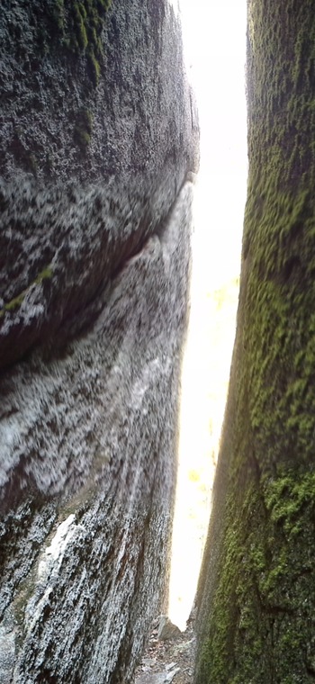 Shimnyn sisällä. Nega seinän vinohalkeama . Ei takaseinää. Esinousu ns. free solo.