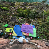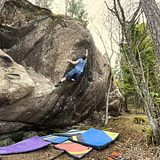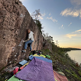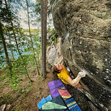 Corner case hosts the main walls with few sixth grade routes but main lines are either high balls or abouve seventh grade. The wall starts from beach with Ruskan punkkari etc. and continues 100m deep into forest until "Shook ones pt.2" it is shady and during summer often five degrees cooler than surroundings. Wind hits here quite easily.