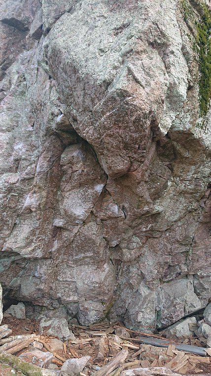 Sit start, up slighty left on upper part. Good holds and downclimb easily on the left slab.