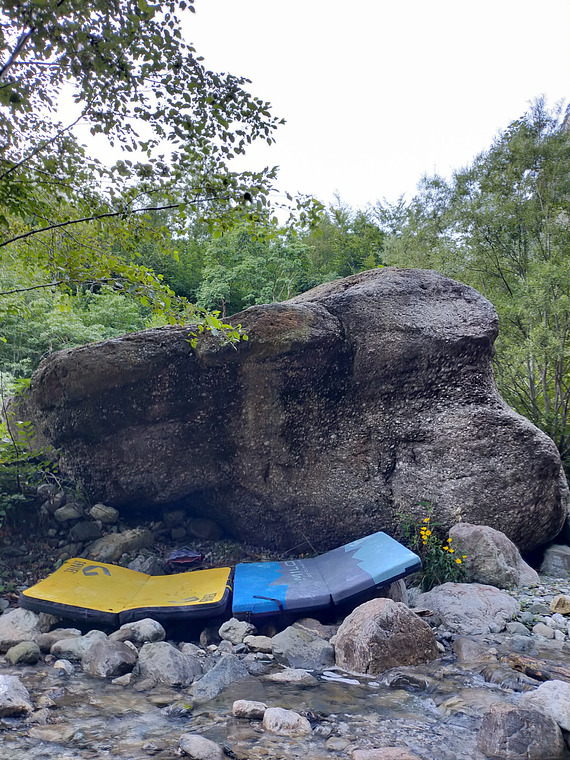 a traverse on slopers that rewards try hard more than technical finess, the line starts in a roof and gradually gets more and more vertical all the way to an almost slabby topout. Only real defect of this climb is the rock quality, very good and quite smooth for the hands but a fair ammount of scrittle in the lower part where the feet go, it will sort itself out with time and more ascents but still...