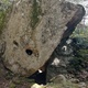 Départ assis main gauche dans le gros trou et main droite sur une réglette verticale.