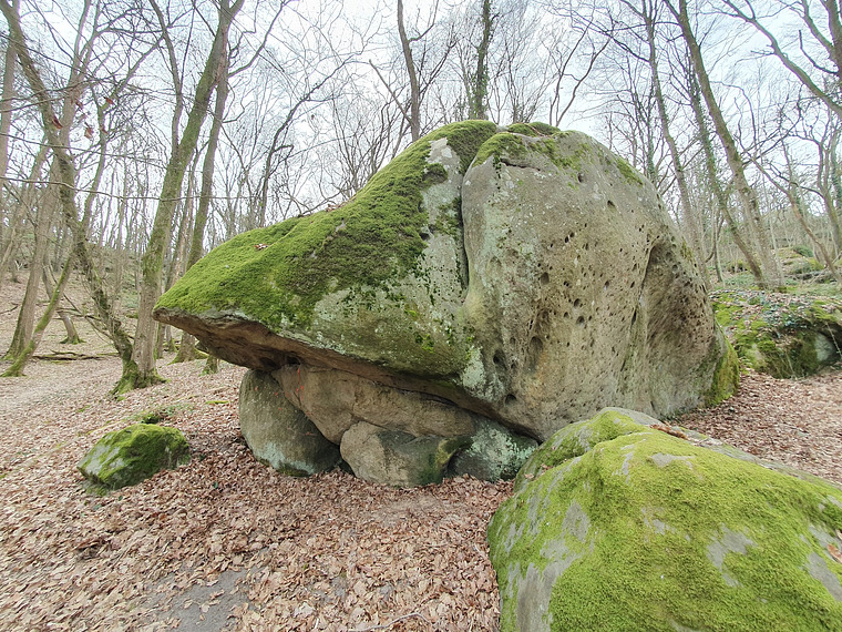 start left of overhang, traverse underneath that to the right and topout at far en of pocket face