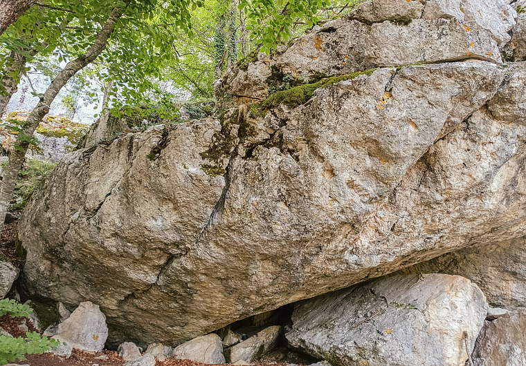 parte sit molto basso, con evidente bidito sx e tacchetta/pinza verticale molto bassa. Difficile allungo per andare a prendere verticale buona di dx, dalla quale si guadagna la fessura e si prosegue sul bordo su buone prese fino in uscita. Da liberare!