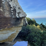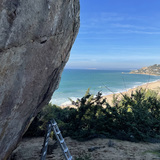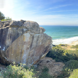 Sandstone climbing a 3 min walk from a beautiful beach, and perched underneath a lighthouse. Largely sandy landings, development done without crashpads. Obvious potential for harder lines. Boulder is maybe 15ft tall, and varies in rock quality from bullet to sandy choss depending on the face.