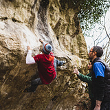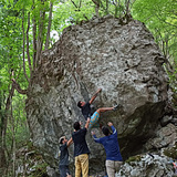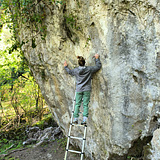 Zona con bloques de caliza dispersos, con numerosos pasos de grados asequibles y líneas duras, incluyendo proyectos aún por encadenar.