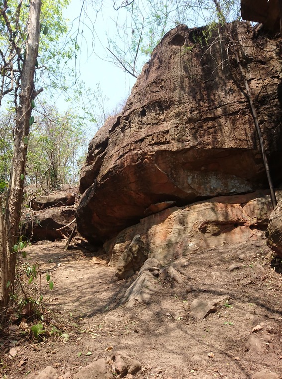 Located on the right corner of the boulder. Start under the overhang and come up. 2 tricky moves. Pretty high as well.